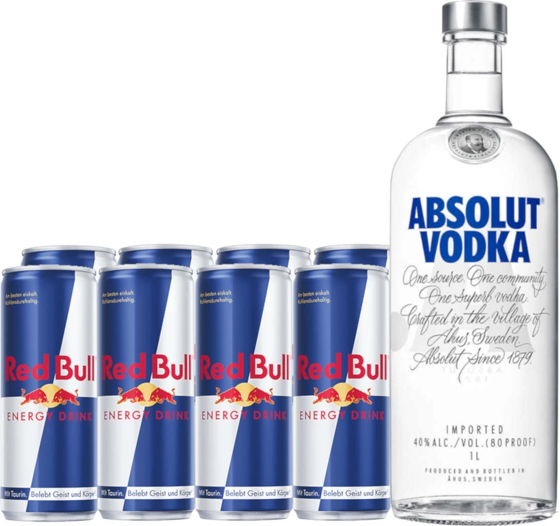 Bundle Absolut Vodka 1 Liter Flasche + 8 Red Bull Dosen