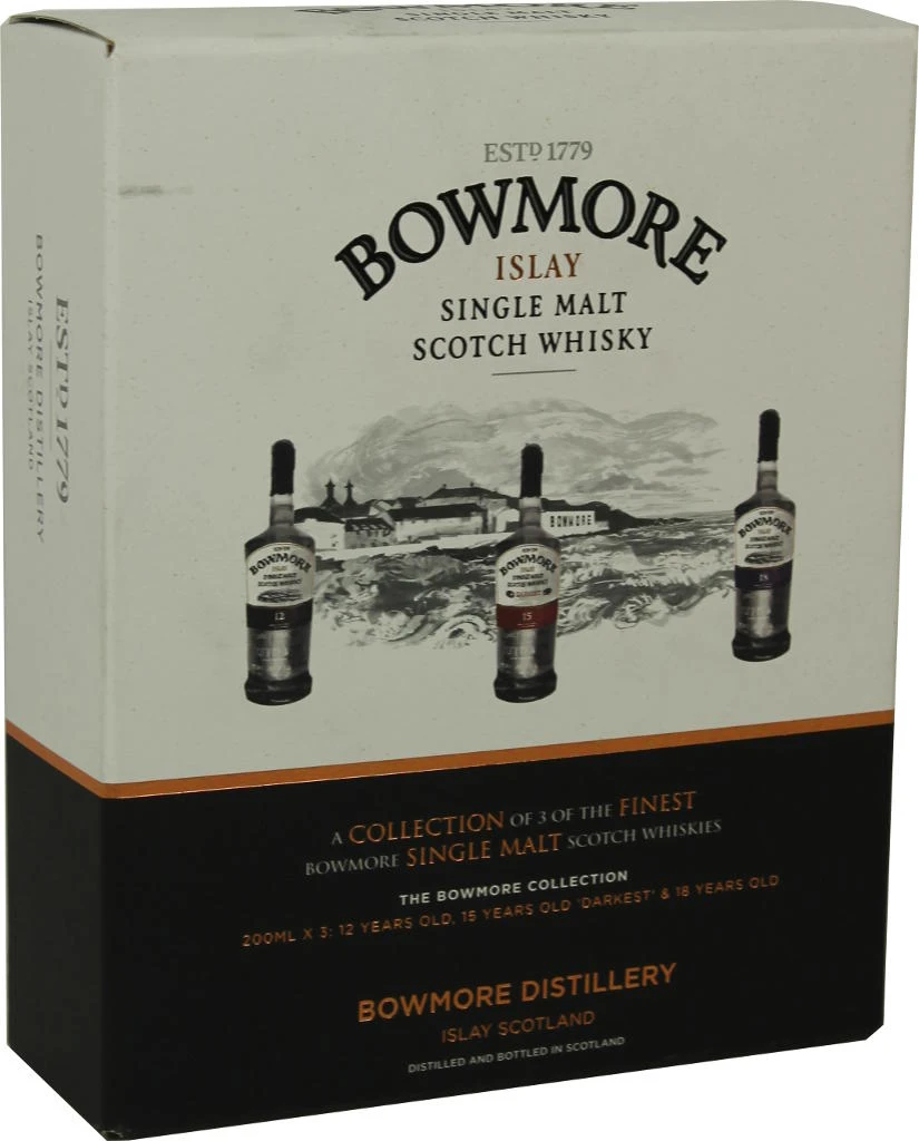 Die Bowmore Classic Collection besteht aus je einer 0,2 Liter-Flasche Bowmore Single Malt Whisky in den Altersstufen 12, 15 und 17 Jahre und bietet damit einen hervorragenden Überblick über die Produktpalette dieser Destillerie. Die drei Flaschen sind in einem eleganten, schwarzen Geschenkkarton verpackt.