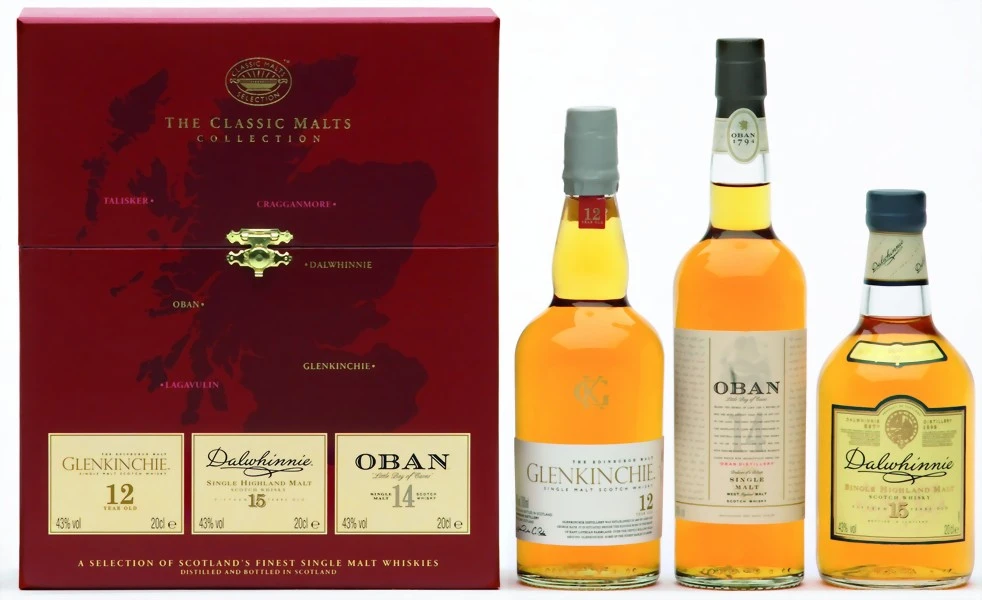 Das Elegance & Finesse Geschenkset enthält drei ausgewählte Whiskys der „Classic Malt Selection“ von Diageo. Der Dalwhinnie 15 Jahre, der Oban 14 Jahre und der Glenkinchie 12 Jahre sind besonders weiche und sanfte Whiskys der Serie. Die attraktive Geschenkbox enthält jeweils eine 0,2 Liter-Flasche der edlen Whiskys aus Schottland.