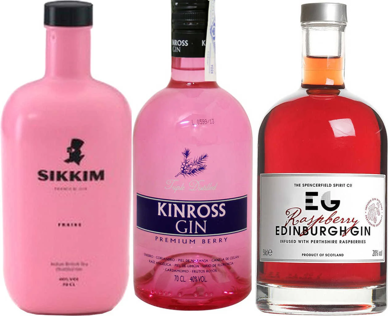Fruchtige Gins mit insg. 1,9l und bis zu 40% Vol. Alc. mit Farbstoff