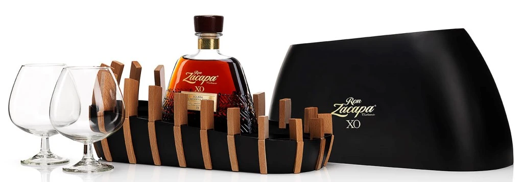 Das Geschenk-Set Ron Zacapa XO Solera 25 mit Gläsern ist nicht nur dekorativ, es erinnert an den Aufbau der Holzschiffe der Conquistadores, die einst an den Küsten der Halbinsel Yucatan landeten und ihre Eroberungsfeldzüge starteten. Der edle Tropfen, der mit seinen feinen Geschmacksnuancen von Holz und Tabak, aber auch von Zuckerrohr, Karamell und schwarzen Beeren ein intensives und anhaltendes Finish beschert, wird im Geschenk-Set ergänzt von zwei Gläsern, die zum sofortigen Probieren einladen – entweder auf Eis oder pur, aber unbedingt mit einer Zigarre.