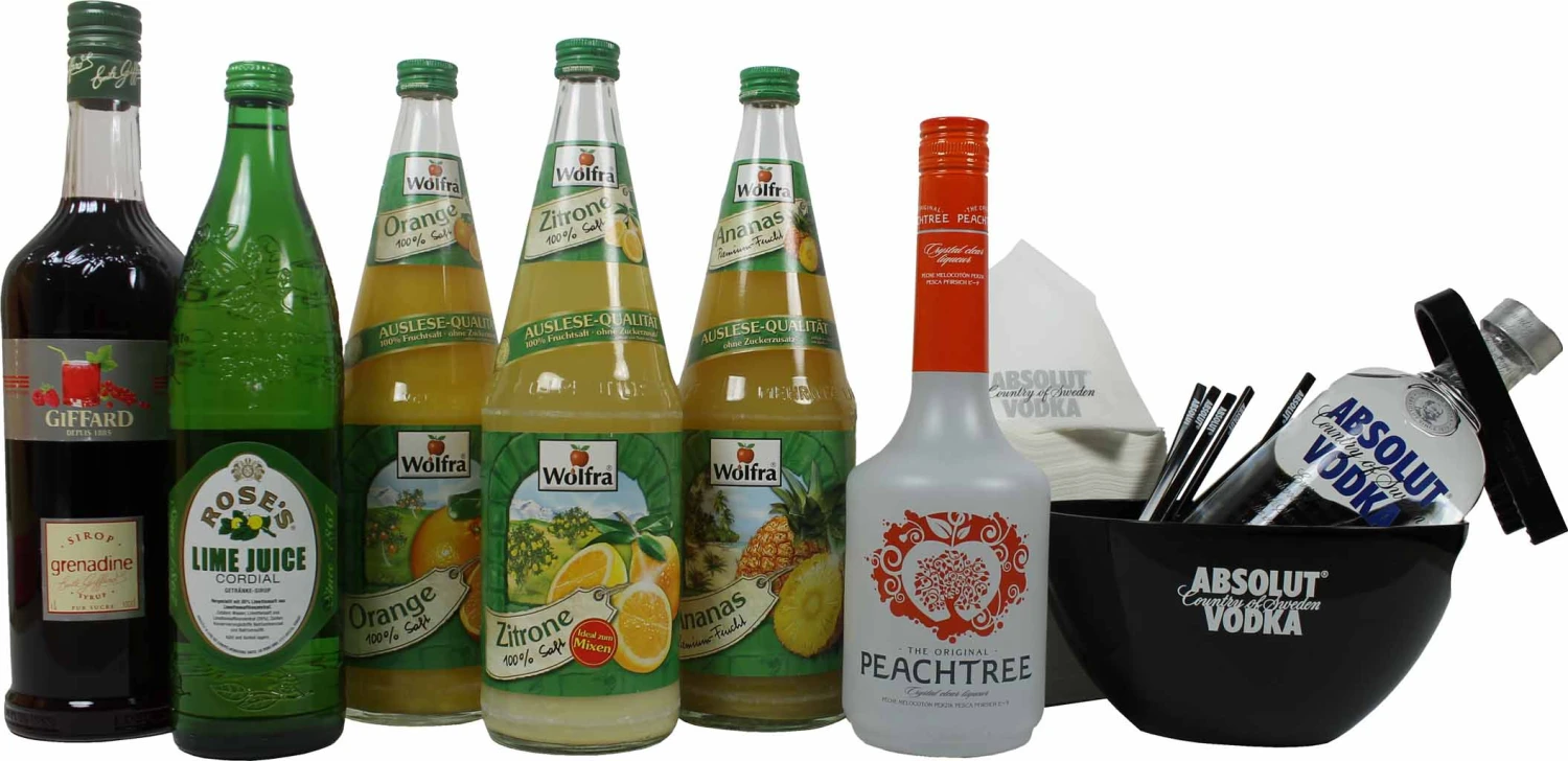 Sex on the Beach Cocktail Set in 7 Flaschen mit insgesamt 6,15 Liter und bis zu 40 %Vol. Alc. mit Farbstoff zzgl. 0,45 € Pfand
